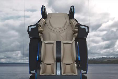 Steuern lässt sich der Sitz mit einer Smartphone-ähnlichen Fernbedienung oder mit Tasten an den Armauflagen, die stark an die Knöpfe der Lamborghini-Fahrzeug-Modelle erinnern. Passend dazu ertönt nach der Betätigung des Startknopfes sattes V12-Aventador-Grollen. Die Soundanlage ist aber nicht nur für das Anfangsgetöse zuständig. Mit ihrer Hilfe soll sogar das Gehirn einer Massage unterzogen werden können. Das Stichwort lautet „binaurale Soundwiedergabe“, sprich ein natürlicher Höreindruck mit genauer Richtungslokalisation. Dass bei 26.000 Euro die unteren Extremitäten nicht zu kurz kommen, dürfte klar sein. Eine separat bedienbare Beineinheit soll mit Luftsäcken und Walzen für Entspannung sorgen, selbst die Füße werden in dem auf die eigene Körpergröße angepassten Sitz massiert.