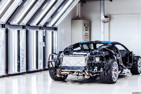 © Bugatti Der komplette Hinterbau mit der Antriebstechnik wird schließlich mit dem Vorderwagen verbunden.