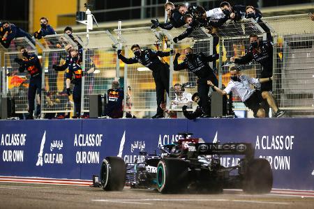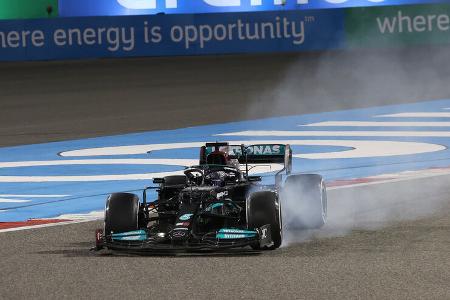 Auch den zweiten Boxenstopps wickelt Mercedes früher ab. Doch nach einem Halt in Runde 28 muss Hamilton für die halbe Renndistanz auf den harten Reifen bis ins Ziel durchhalten.