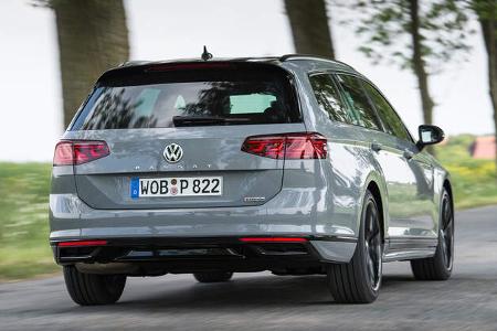... überhaupt ein paar neue Linien am Bug, Heckleuchten mit Lichtsignatur ähnlich wie beim Touareg, mittig verlaufender Passat-Schriftzug und breite Auspuff-Blenden in der Heckschürze.