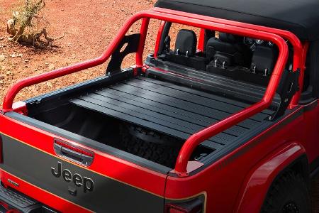 © Jeep Rot-schwarze Farbgebung, eine Rollabdeckung der Ladefläche und ein spezieller Überrollbügel kennzeichnen das Konzeptauto.