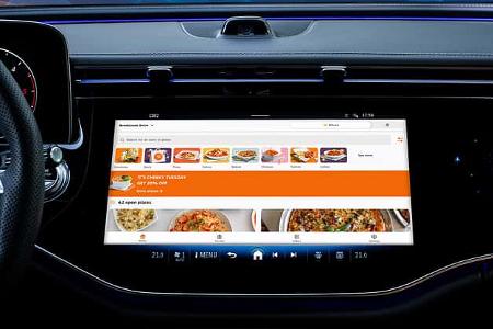 Hierzu braucht es natürlich auch neue Funktionen und Apps. So will Mercedes beispielsweise Dienste wie Lieferando (siehe Bild), die Konferenz-Dienste WebEx und Zoom, aber auch ...