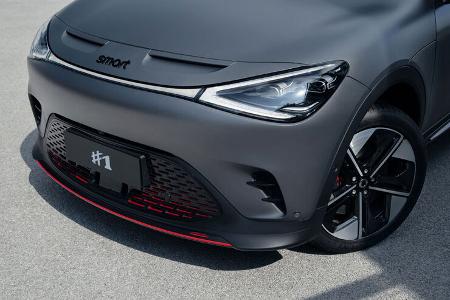 © Stefan Baldauf Der Smart #1 von Brabus zeigt sich mattgrau lackiert, mit roten Akzenten an der Karosserie.