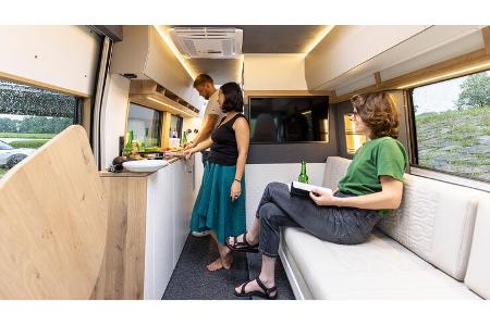 Der Grundriss im Campingbus ist ungewöhnlich: Sofa und Küchenzeile stehen sich quasi gegenüber.