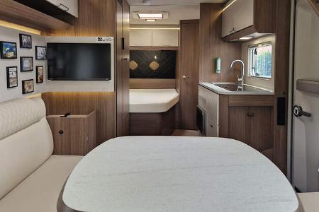 Das Design der neuen Baureihe hat Tabbert modern gestaltet, verwendet aber auch klassische Holzoberflächen.