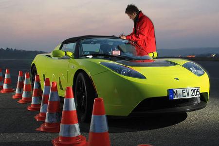 Ab 128.520 Euro war der Tesla Roadster S zu haben. Universal-Stromanschluss, einstellbares Fahrwerk, Schmiederäder, Lederpolster, Stereoanlage sowie Karbon-Hardtop sind serienmäßig.