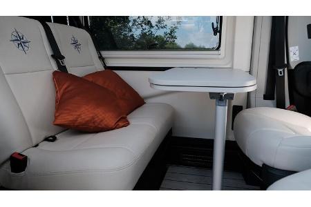 Die Sitzgruppe lässt sich - gegen Aufpreis - mit einer Bettumbau-Option versehen. Dort entsteht zusätzlich zum Heckdoppelbett eine 180-x-90-Zentimeter große Liegefläche.