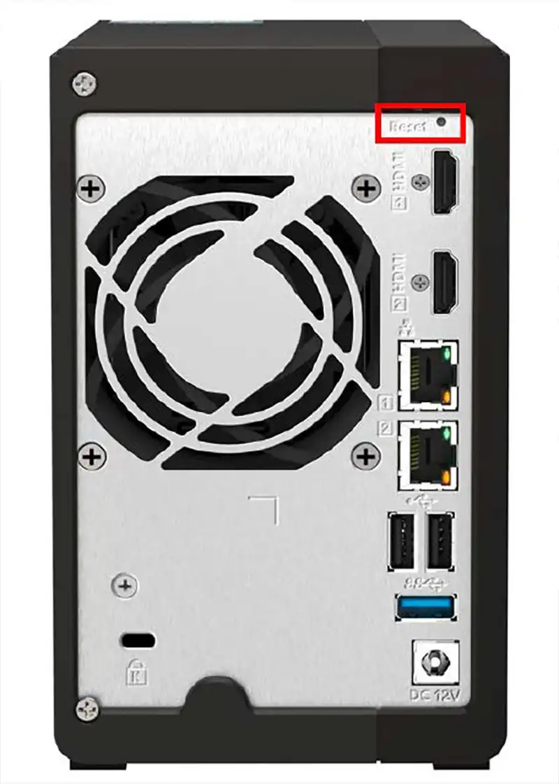 Die zweite Variante beim NAS ist ein Hardware-Reset. Dafür findest Du am Gerät einen versteckten Knopf, den Du meist mit einem spitzen Regenstand aktivieren musst. Doch auch hier gibt es teilweise unterschiedliche Auswirkungen. Welchen Effekt ein Hardware-Reset an Deinem NAS hat und wo Du den Knopf genau findest, entnimmst Du der Anleitung Deines Geräts.