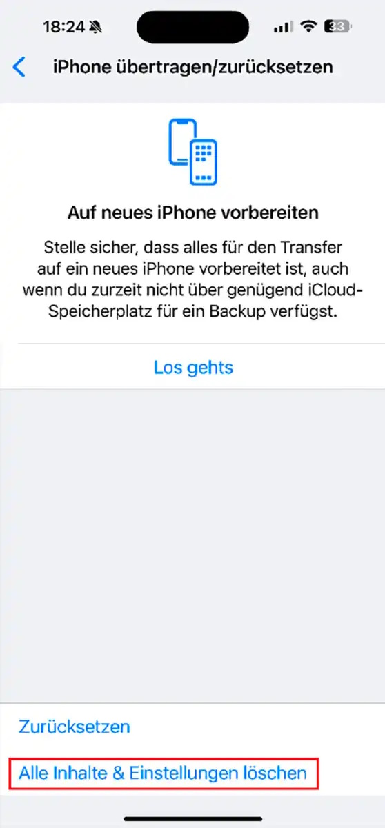 Besitzt Du ein iPhone von Apple, dann ist ein vollständiger Reset ebenfalls möglich. Die Option findest Du in den Einstellungen unter „Allgemein → iPhone übertragen/zurücksetzen“. Dort wählst Du einfach „Alle Inhalte & Einstellungen löschen“ aus. Damit sind alle Daten gelöscht und die Einstellungen zurückgesetzt.