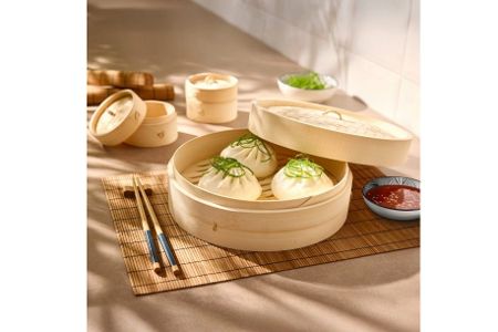 Bambus; zur schonenden Zubereitung von Gemüse, Reis, Teigtaschen und Fisch;