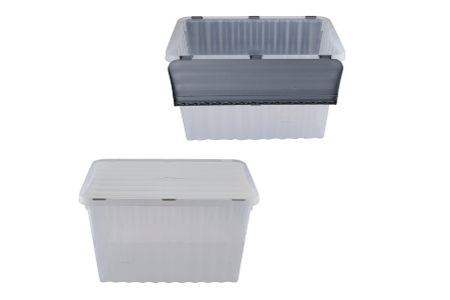 Polypropylen; Deckel zweiteilig mit je 3 Scharnieren und Griffmulde; stapel- und nestbar;