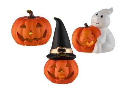 Geist: ca. H 12 cm, Kürbis mit Hut: ca. H 19 cm, Kürbis: ca. H 11 cm