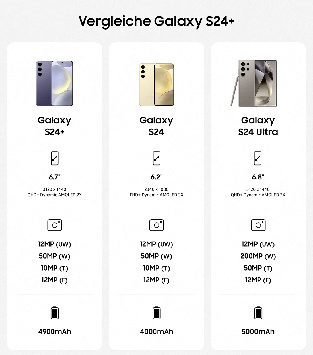 * Galaxy S24+ im Vergleich zu Galaxy S24.