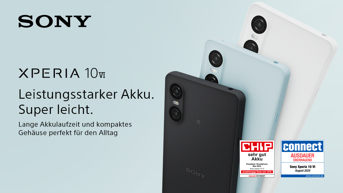 Mit einer Akkulaufzeit von 2 Tagen1 in einem superleichten Gehäuse, hervorragender Audioqualität, KI-Kameratechnologie für Inhalte auf Influencer-Niveau, einem Display, das auf der TV-Expertise von Sony basiert, und einem robusten Design ist das Xperia 10 VI das perfekte Gerät für den Alltag
