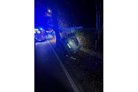SI / Bielefeld / Jöllenbeck - Ein Pkw-Fahrer war in der Nacht auf Freitag, 07.11.2025, betrunken auf der Beckendorfstraße unterwegs, wo er eine Verkehrsinsel überfuhr und schließlich im Graben landete.