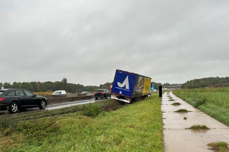 Am Morgen, des 22.09.2025, kam ein LKW-Gespann im einspurigen Baustellenbereich der A65 in Fahrtrichtung Karlsruhe, kurz vor der Anschlussstelle Rohrbach, nach rechts in den Grünstreifen ab und fuhr sich dabei fest.