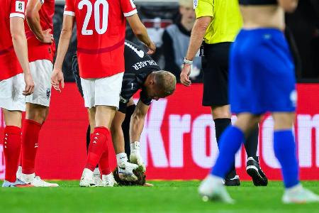 Der befürchtete Spielabbruch blieb aus, nach rund fünfminütiger Unterbrechung konnte der dänische Schiedsrichter Jakob Kehlet fortsetzen - aber nur für wenige Sekunden, dann ruhte der Ball mehrere Minuten wegen einer Behandlung des zyprischen Torhüters Fabiano Freitas.