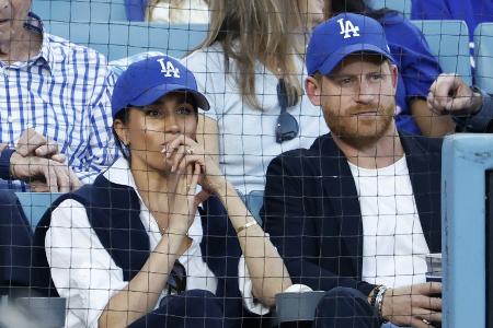 Der Duke of Sussex trug beim vierten Spiel der World Series im Baseball eine Kappe der Los Angeles Dodgers.