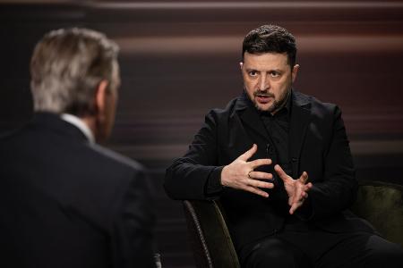 Die Ukraine stecke "in echten Schwierigkeiten", gibt der Moderator schließlich zu bedenken und will wissen, welches Angebot der Präsident akzeptieren würde. "Im Krieg gibt es keine einfachen Lösungen", sagt der. "Alle haben es schwer." Großen Wert lege er auf Sicherheitsgarantien: "Wer wird garantieren, dass Russland uns nicht wieder angreift? Wer wird Russland stoppen?" Bei NATO-Mitgliedern "wäre das ja zumindest auf Papier klar", merkt Selenskyj an und wird deutlich: "Wer kämpft an unserer Seite gegen Russland? Wer? Bis jetzt niemand!"