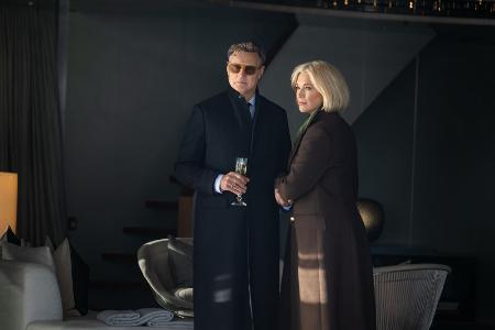 © © 2025 Netflix Inc. / Parisa Taghizadeh Wer so reich ist wie Heidi (Hannah Waddingham) und Themas (David Morrissey) hat andere Sorgen, als sich um einen vermeintlichen Mord zu kümmern.