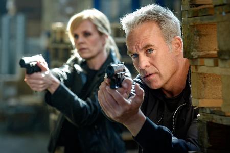 Auf ein Baustoffcenter wurde ein Raubüberfall begangen. Ina Zimmermann (Melanie Marschke) und Jan Maybach (Marco Girnth) von der SOKO Leipzig halten das Geschehen im Auge, denn noch sind die Täter vor Ort.
