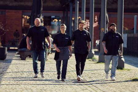 © RTL / Hendrik Lüders Die Finalisten von "Mälzers Meisterklasse", von links: Gabriel, Monika, Jonas und Philipp.