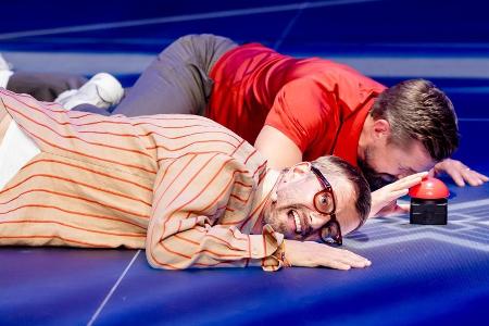 In dem Finalspiel ging es darum, Gegenstände aus unterschiedlichen Höhen gezielt fallenzulassen. Dazu hatte der Kanal ProSieben einen schwindelerregend hohen Turm auf dem Studiogelände errichtet. Da die beiden Entertainer mit drei Vorteilen ins Finale gingen, durften sie theoretisch bei drei Höhen verfehlen, wie Moderator Steven Gätjen (53) vorab erklärte.