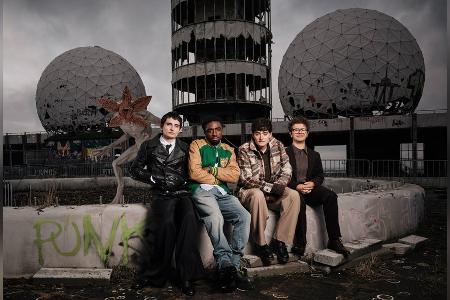 Kurz vor dem Start der finalen "Stranger Things"-Staffel haben Darsteller aus der Serie der deutschen Hauptstadt einen Besuch abgestattet. Finn Wolfhard (22), Gaten Matarazzo (23), Caleb McLaughlin (24) und Noah Schnapp (21) nutzten ihren Berlin-Aufenthalt für einen Abstecher zum Teufelsberg - einer ehemaligen Abhörstation der US-Geheimdienste aus den Zeiten des Kalten Krieges. Am Mittwoch posierten die vier Darsteller dort - gemeinsam mit einem Demogorgon - für Fotos.