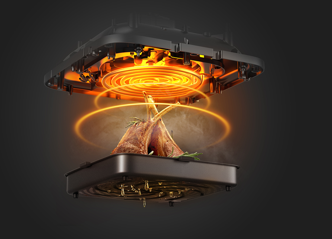Das optimierte Luftkanaldesign verbessert die Luftzirkulation und -verteilung. Die heiße Luft wird direkt zum Garkorb geleitet und sorgt so für gleichmäßige Ergebnisse ohne Wenden.
